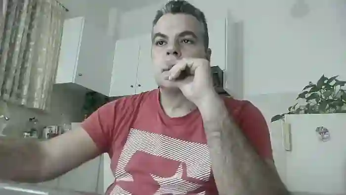 His birthday is January 1st 1990 making him 35 years old, and the average age of models on Flirt4Free is 25—making him one of the older models. His height is 186cm, and his weight is 100kg. He identifies his ethnicity as caucasian. He has a trimmed pubic hair, muscular body with black eyes and short black hair.