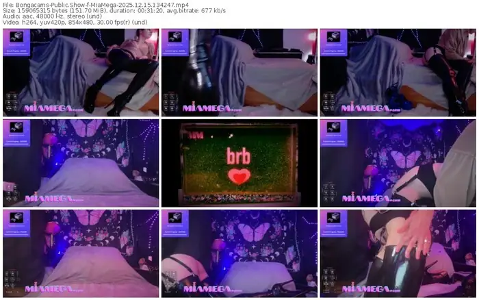There are a total of 6 recordings (2 hours) of MiaMega from Bongacams available below.