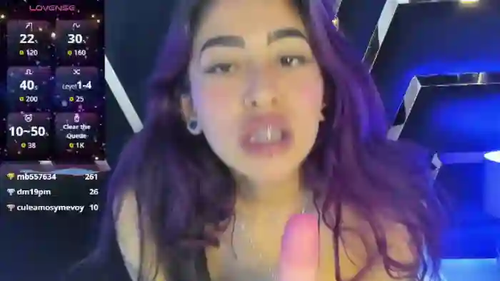 Her birthday is December 1st 2006 making her 19 years old, and the average age of models on Flirt4Free is 25—making her one of the younger models. Her height is 160cm, and her weight is 50kg. She identifies her ethnicity as hispanic. She has a shaved pubic hair, and c cup breasts on a slim body with brown eyes and shoulder multi color hair.Her body art includes piercings, tattoo(s).