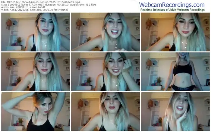 There are a total of 21 recordings (11 hours) of AliceSunshin3 from MyFreeCams available below.