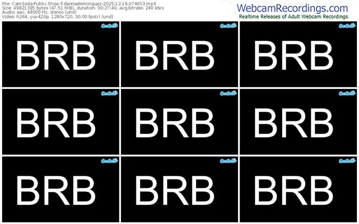 There are a total of 107 recordings (53 hours) of dannadomiinguez from CamSoda available below.