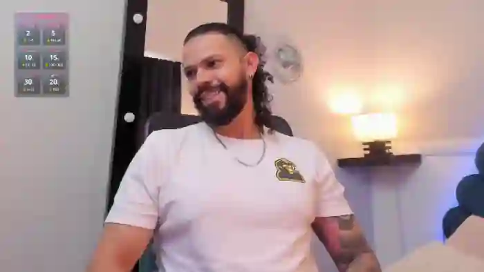 His birthday is March 13th 1991 making him 34 years old, and the average age of models on Flirt4Free is 25—making him one of the older models. His height is 170cm, and his weight is 98kg. He identifies his ethnicity as hispanic. He has a natural pubic hair, muscular body with brown eyes and shoulder black hair.His body art includes piercings, tattoo(s).