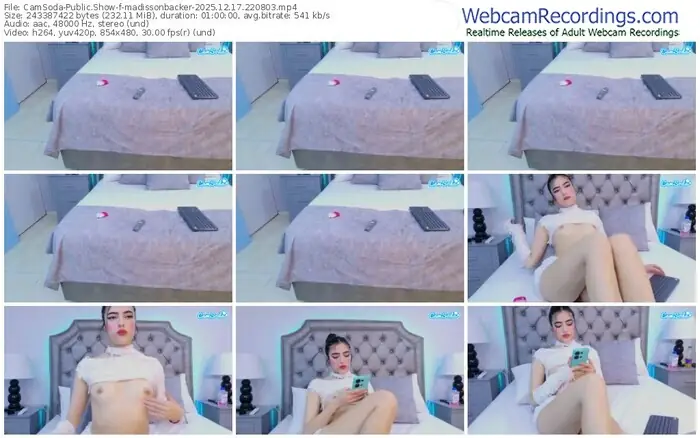 There are a total of 25 recordings (12 hours) of madissonbacker from CamSoda and Stripchat available below.