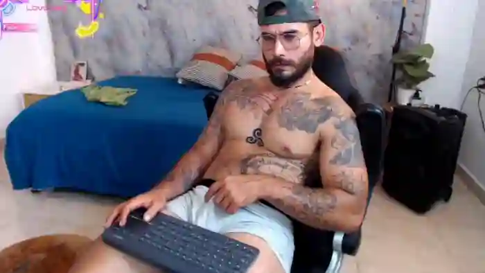 His birthday is March 6th 2000 making him 26 years old, and the average age of models on Flirt4Free is 25—making him one of the older models. His height is 172cm, and his weight is 80kg. He identifies his ethnicity as mixed. He has a hairy pubic hair, athletic body with green eyes and long brown hair.His body art includes tattoo(s).
