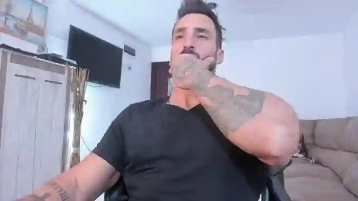 His birthday is August 24th 1990 making him 35 years old, and the average age of models on Flirt4Free is 25—making him one of the older models. His height is 185cm, and his weight is 105kg. He identifies his ethnicity as mixed. He has a natural pubic hair, muscular body with brown eyes and short black hair.His body art includes tattoo(s).