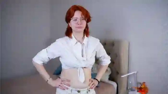 Her birthday is December 4th 2006 making her 19 years old, and the average age of models on Flirt4Free is 25—making her one of the younger models. Her height is 168cm, and her weight is 60kg. She identifies her ethnicity as caucasian. She has a shaved pubic hair, and c cup breasts on a average body with blue eyes and average red hair.Her body art includes piercings.