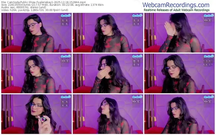 There are a total of 547 recordings (409 hours) of valeriekay1 from CamSoda available below.
