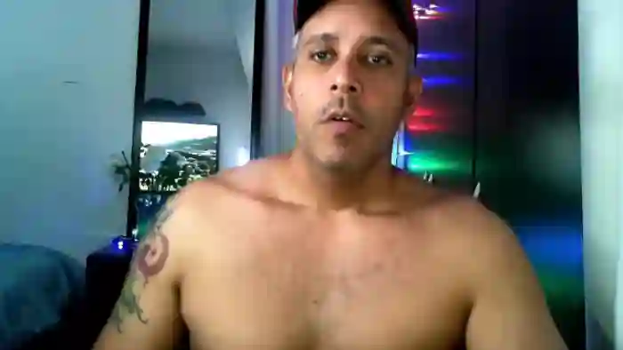 His birthday is January 1st 1980 making him 45 years old, and the average age of models on Flirt4Free is 25—making him one of the older models. His height is 185cm, and his weight is 96kg. He identifies his ethnicity as hispanic. He has a natural pubic hair, muscular body with brown eyes and short black hair.His body art includes tattoo(s).