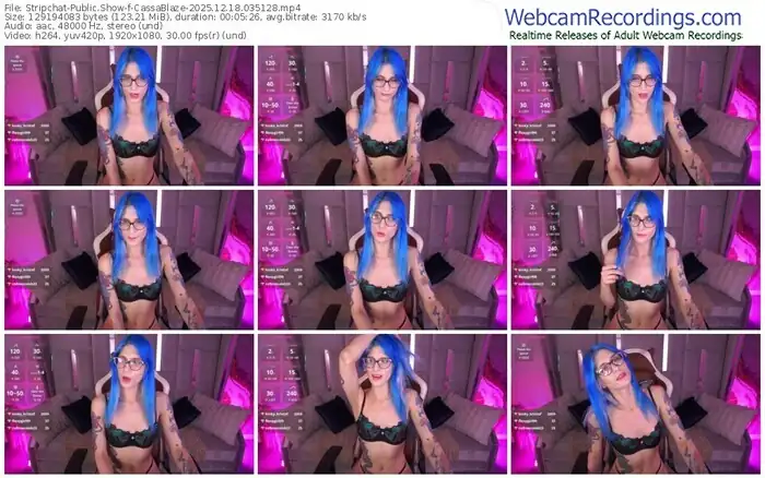 There are a total of 21 recordings (7 hours) of CassaBlaze from Stripchat available below.