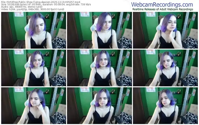 There are a total of 222 recordings (176 hours) of gina-dawson from Flirt4Free available below.