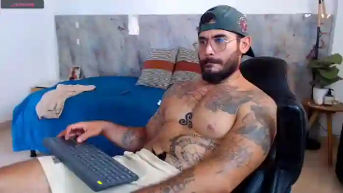His birthday is March 6th 2000 making him 26 years old, and the average age of models on Flirt4Free is 25—making him one of the older models. His height is 172cm, and his weight is 80kg. He identifies his ethnicity as mixed. He has a hairy pubic hair, athletic body with green eyes and long brown hair.His body art includes tattoo(s).
