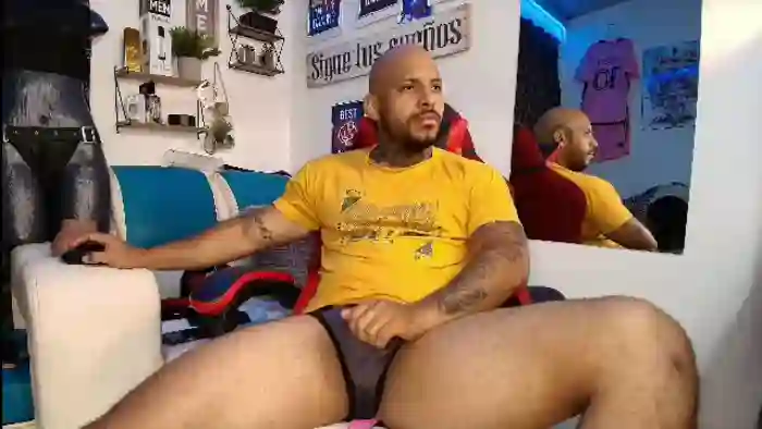 His birthday is October 14th 1994 making him 31 years old, and the average age of models on Flirt4Free is 25—making him one of the older models. His height is 170cm, and his weight is 70kg. He identifies his ethnicity as hispanic. He has a shaved pubic hair, muscular body with black eyes and bald bald hair.His body art includes piercings, tattoo(s).
