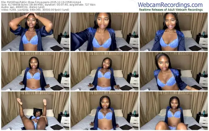 There are a total of 13 recordings (8 hours) of mya-paris from Flirt4Free available below.