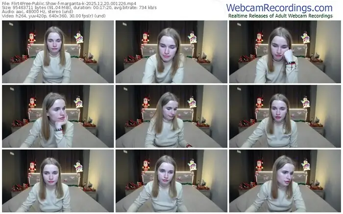 There are a total of 3,282 recordings (1,262 hours) of margarita-k from Flirt4Free available below.