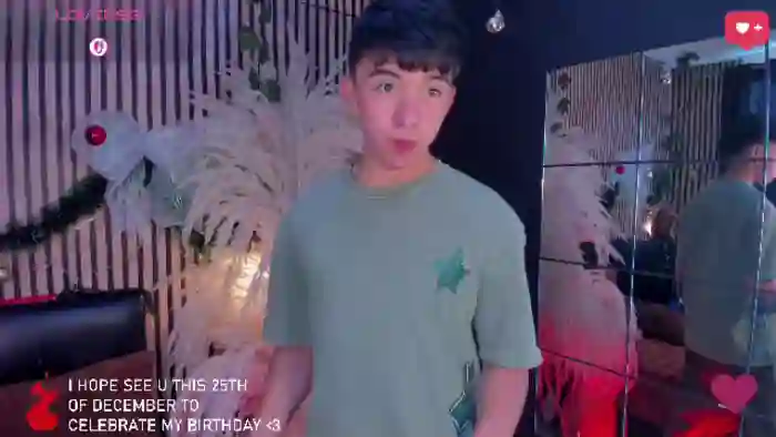 His birthday is December 25th 2006 making him 19 years old, and the average age of models on Flirt4Free is 25—making him one of the younger models. His height is 168cm, and his weight is 66kg. He identifies his ethnicity as hispanic. He has a natural pubic hair, muscular body with brown eyes and short black hair.