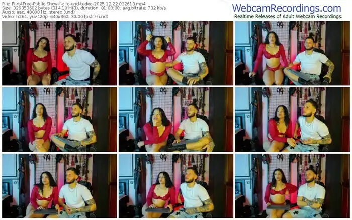 There are a total of 297 recordings (225 hours) of clio-and-tadeo from Flirt4Free available below.