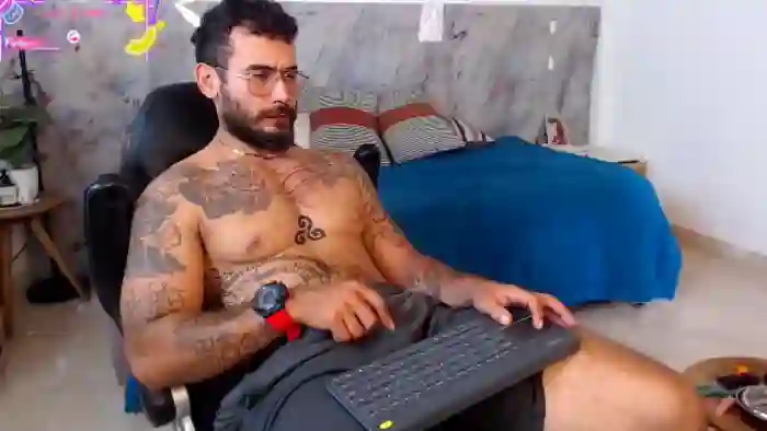 His birthday is March 6th 2000 making him 26 years old, and the average age of models on Flirt4Free is 25—making him one of the older models. His height is 172cm, and his weight is 80kg. He identifies his ethnicity as mixed. He has a hairy pubic hair, athletic body with green eyes and long brown hair.His body art includes tattoo(s).