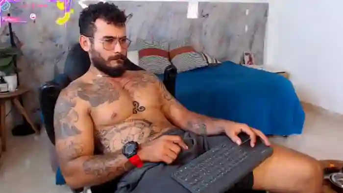 His birthday is March 6th 2000 making him 26 years old, and the average age of models on Flirt4Free is 25—making him one of the older models. His height is 172cm, and his weight is 80kg. He identifies his ethnicity as mixed. He has a hairy pubic hair, athletic body with green eyes and long brown hair.His body art includes tattoo(s).