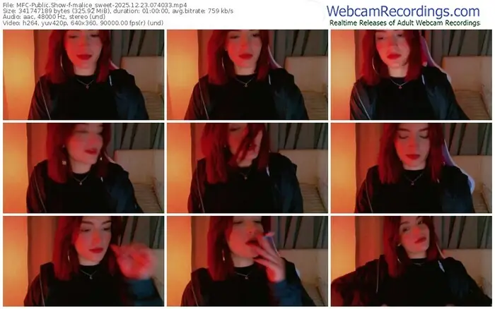 There are a total of 848 recordings (443 hours) of malice_sweet from MyFreeCams available below.