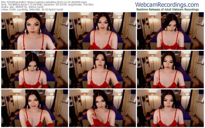 There are a total of 1,013 recordings (364 hours) of jammy-salsalita from Flirt4Free available below.
