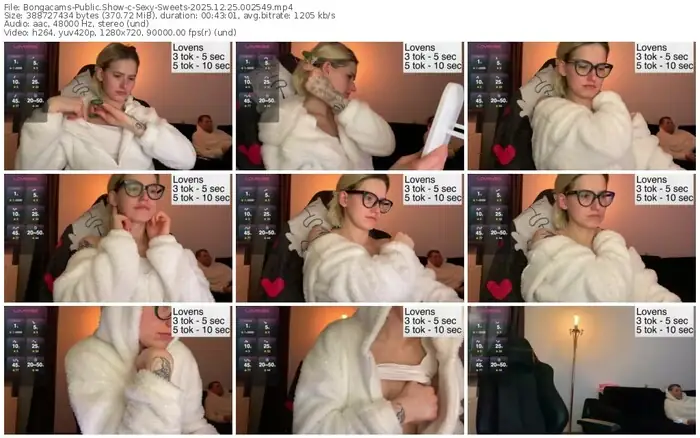 There are a total of 1,255 recordings (702 hours) of Sexy-Sweets from Bongacams available below.