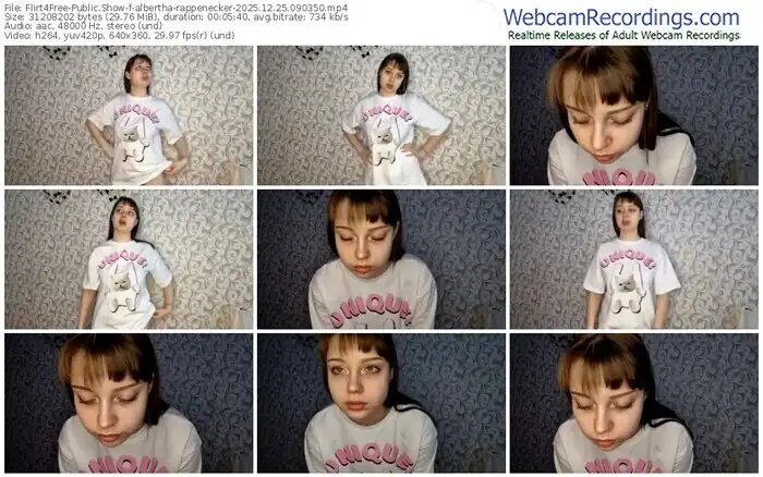 There are a total of 31 recordings (17 hours) of albertha-rappenecker from Flirt4Free available below.