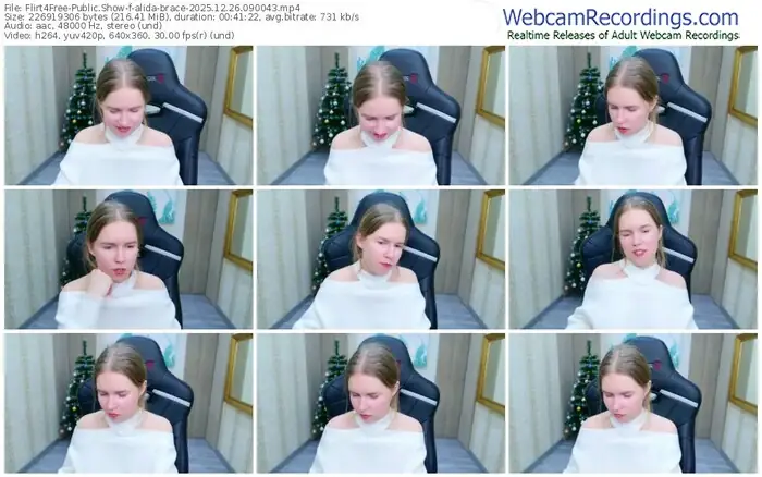 There are a total of 36 recordings (19 hours) of alida-brace from Flirt4Free available below.