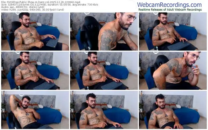 There are a total of 710 recordings (493 hours) of hanz-col from Flirt4Free available below.