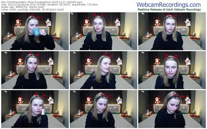 There are a total of 3,290 recordings (1,264 hours) of margarita-k from Flirt4Free available below.