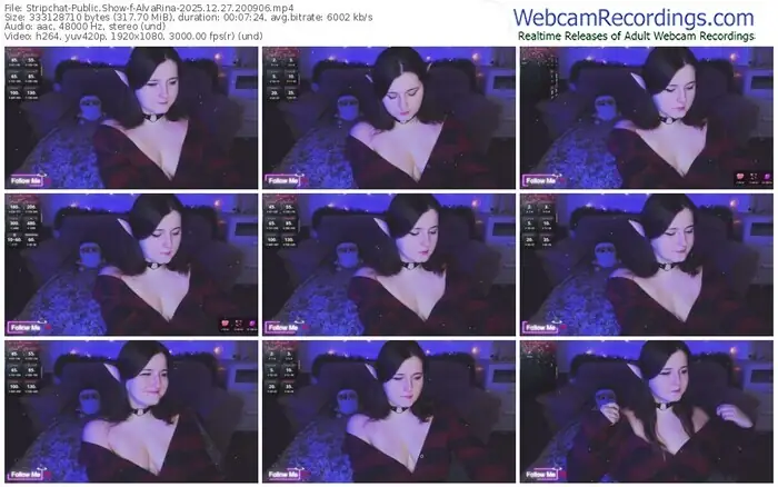 There are a total of 6 recordings (2 hours) of AlvaRina from Stripchat available below.
