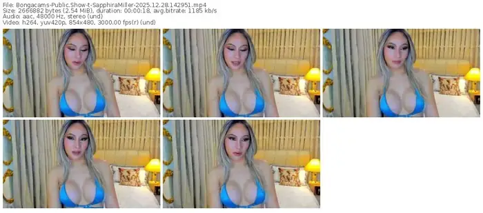 There are a total of 1,281 recordings (216 hours) of SapphiraMiller from Bongacams available below.