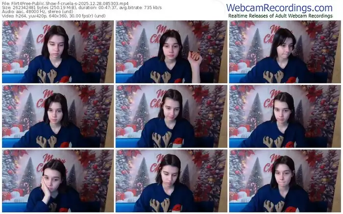 There are a total of 260 recordings (122 hours) of cruela-s from Flirt4Free available below.