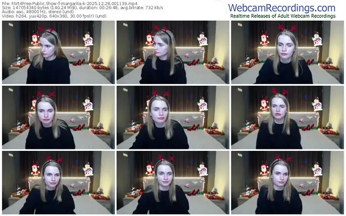 There are a total of 3,290 recordings (1,264 hours) of margarita-k from Flirt4Free available below.