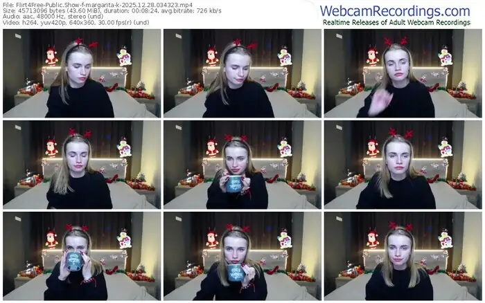 There are a total of 3,290 recordings (1,264 hours) of margarita-k from Flirt4Free available below.
