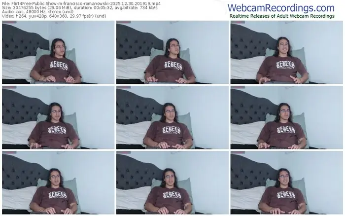 There are a total of 362 recordings (284 hours) of francisco-romanowski from Flirt4Free available below.