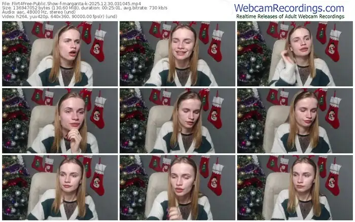 There are a total of 3,290 recordings (1,264 hours) of margarita-k from Flirt4Free available below.