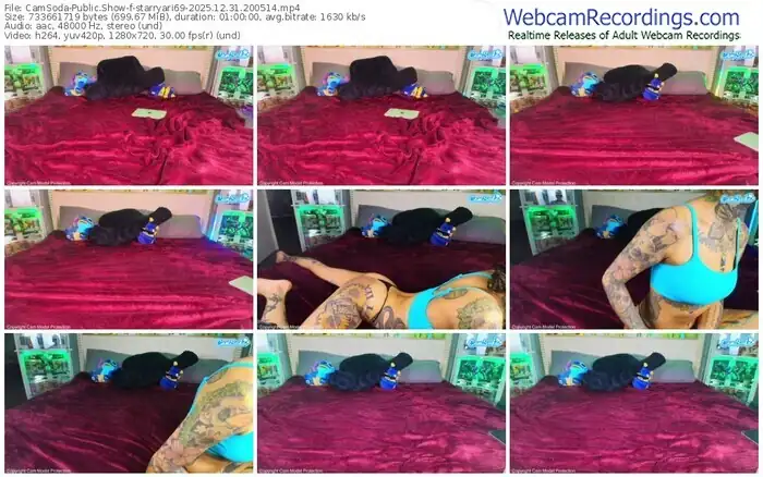 There are a total of 2,468 recordings (1,602 hours) of starryari69 from CamSoda available below.