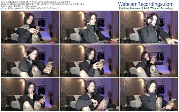 There are a total of 324 recordings (231 hours) of uwu_eva from Chaturbate available below.