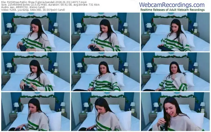 There are a total of 225 recordings (129 hours) of gloria-bendall from Flirt4Free available below.