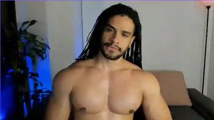 His birthday is November 15th 1997 making him 28 years old, and the average age of models on Flirt4Free is 25—making him one of the older models. His height is 180cm, and his weight is 86kg. He identifies his ethnicity as pacific islander. He has a hairy pubic hair, muscular body with black eyes and very long black hair.His body art includes piercings, tattoo(s).