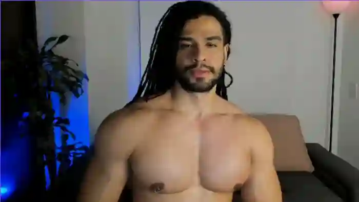 His birthday is November 15th 1997 making him 28 years old, and the average age of models on Flirt4Free is 25—making him one of the older models. His height is 180cm, and his weight is 86kg. He identifies his ethnicity as pacific islander. He has a hairy pubic hair, muscular body with black eyes and very long black hair.His body art includes piercings, tattoo(s).