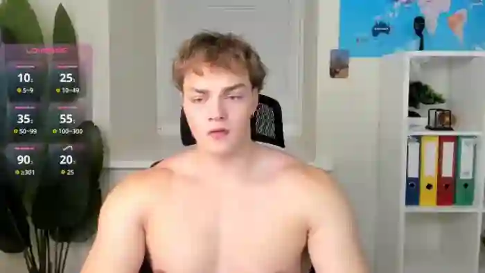 His birthday is September 13th 2006 making him 19 years old, and the average age of models on Flirt4Free is 25—making him one of the younger models. His height is 190cm, and his weight is 90kg. He identifies his ethnicity as caucasian. He has a trimmed pubic hair, muscular body with green eyes and short red hair.His body art includes piercings.