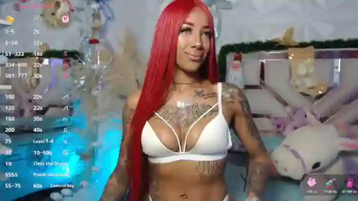 Her birthday is June 12th 2026 making her 25 years old. Her height is 165cm, and her weight is 52kg. She identifies her ethnicity as black. She has a slim body with d cup breasts body with blue eyes and long red hair.