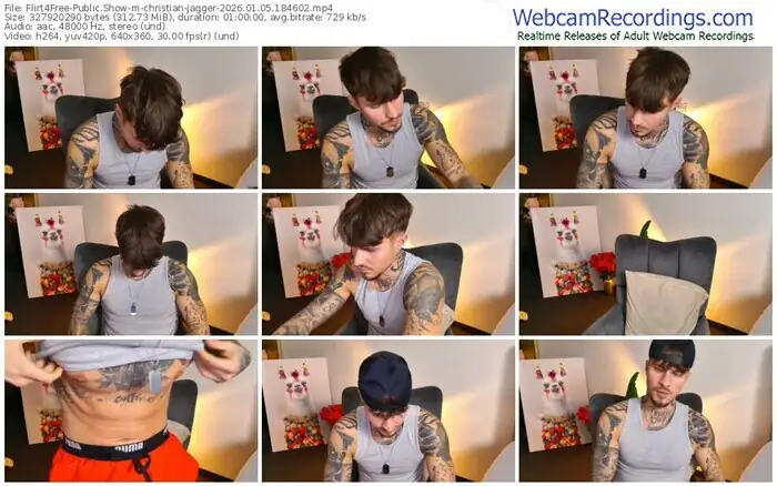 There are a total of 190 recordings (137 hours) of christian-jagger from Flirt4Free available below.