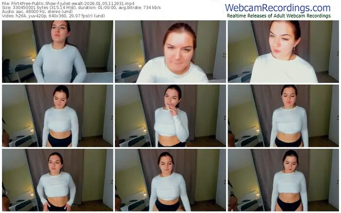 There are a total of 52 recordings (36 hours) of juliet-ewalt from Flirt4Free available below.