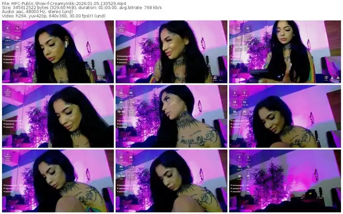 There are a total of 400 recordings (240 hours) of CreamyInkk from MyFreeCams, Bongacams and Chaturbate available below.