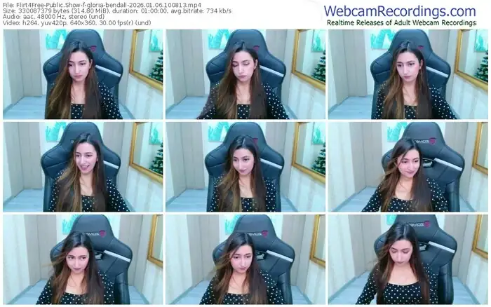 There are a total of 225 recordings (129 hours) of gloria-bendall from Flirt4Free available below.