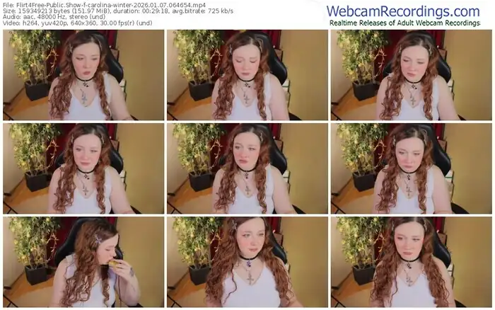 There are a total of 157 recordings (102 hours) of carolina-winter from Flirt4Free available below.