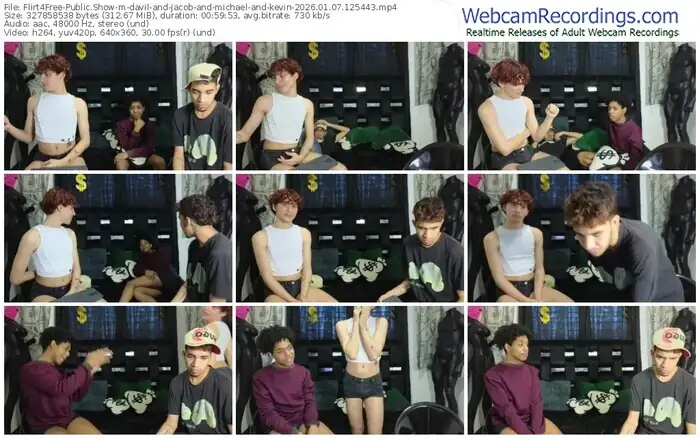 There are a total of 130 recordings (91 hours) of davil-and-jacob-and-michael-and-kevin from Flirt4Free available below.