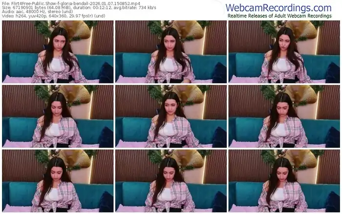 There are a total of 225 recordings (129 hours) of gloria-bendall from Flirt4Free available below.